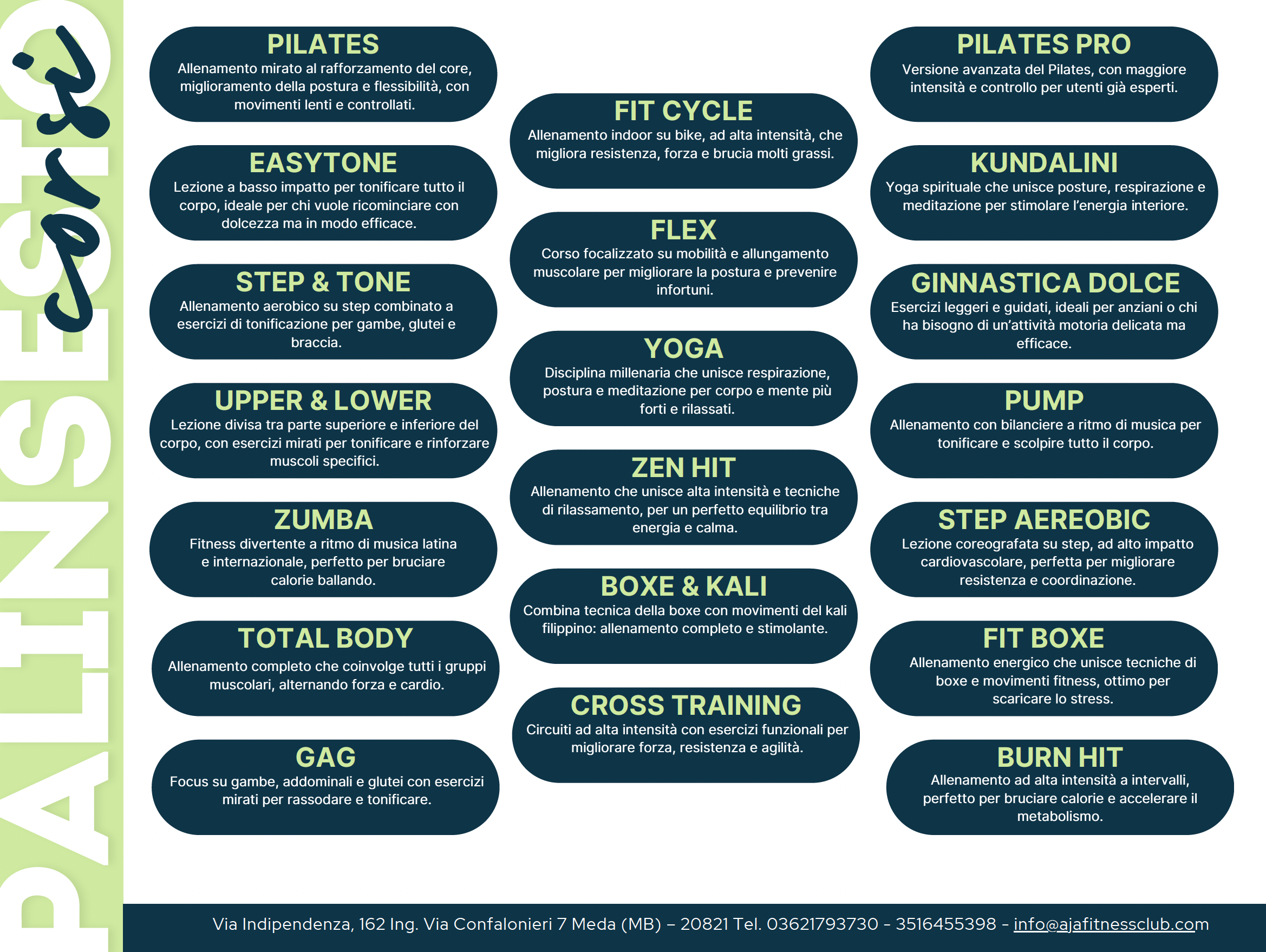 Nel nostro club potrai esplorare un ricco palinsesto di corsi collettivi e accedere a percorsi personalizzati pensati per il tuo benessere e rendimento. I nostri personal trainer qualificati sono costantemente presenti per affiancarti in allenamenti one-to-one, definire schede su misura e adattare ogni esercizio alle tue esigenze individuali. In parallelo, potrai usufruire di programmi alimentari creati da nutrizionisti esperti, studiati appositamente per armonizzare nutrizione e prestazione. Per chi invece necessita di un supporto mirato al recupero muscolare o osteo-articolare, offriamo percorsi personalizzati con massofisioterapisti qualificati, pensati per favorire una ripresa efficace e duratura. Qui, ogni attività e ogni servizio è progettato per accompagnarti in un percorso completo: dall’allenamento all’alimentazione, dal movimento al recupero.